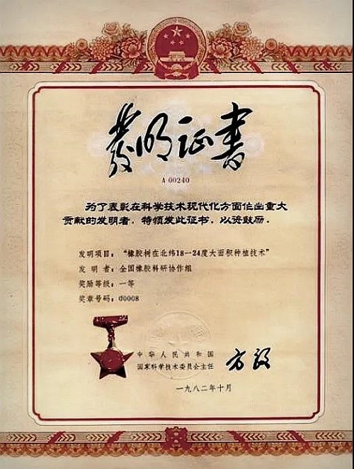 但是,這個國家科技發(fā)明一等獎到底發(fā)給誰呢?當時竟然找不到領(lǐng)獎人。因為墾區(qū)的科技人員一向習慣于埋頭苦干、無私奉獻,大家愿意把這個科技發(fā)明視為集體智慧的結(jié)晶。我國橡膠科技發(fā)明一鳴驚人,在國內(nèi)迅速傳開,在國際上也一炮打響了。
