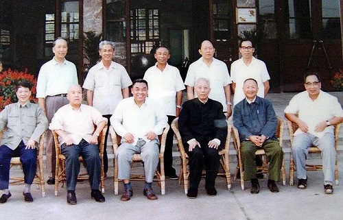 ▼1982年我國向全世界宣布:我國橡膠北移種植成功。廣東墾區(qū)與其他橡膠墾區(qū)榮獲國家一等科技成果獎,老農(nóng)墾部長王震(前右三)到廣東省農(nóng)墾總局祝賀,并與總局、海南局、通什局、湛江局的主要領(lǐng)導(dǎo)合影。