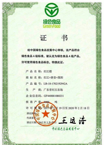 紅江橙,是紅江場科技人員,從一棵變異的單體中,通過嫁接促成嵌合體的變異而生成。自1973年投產(chǎn)以來,現(xiàn)已擁有二萬畝的生產(chǎn)基地。目前紅江農(nóng)場以創(chuàng)名牌為中心,規(guī)劃并建立完善的管理系統(tǒng),已擁有獨立的科技隊伍,與獨立的生產(chǎn)基地、試驗基地、培育基地,以及加工與分級包裝生產(chǎn)線。已獲國家頒發(fā)的“綠色食品”標(biāo)準(zhǔn)證書,中國綠色食品A級認證,以及中國農(nóng)業(yè)博覽會名牌產(chǎn)品、廣東省名牌產(chǎn)品、廣東省著名商標(biāo)。已列入國家的星火計劃,是中國外交部國賓館指定的國賓產(chǎn)品。產(chǎn)品已經(jīng)出口了幾十個國家與地區(qū)。