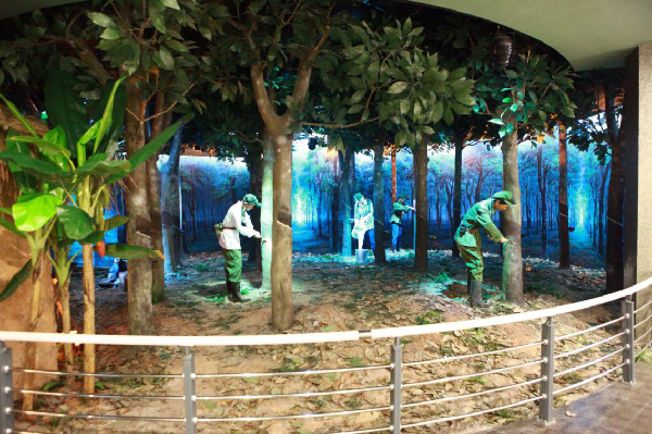 博物館真實(shí)地記錄了以中國(guó)人民解放軍官兵、復(fù)轉(zhuǎn)軍人、歸國(guó)華僑、知識(shí)青年、社會(huì)民工、科技人員為主要代表的英雄群體艱苦奮斗、勇于開拓的歷史,藝術(shù)展現(xiàn)了海墾人創(chuàng)造北緯十八度以北大面積成功種植天然橡膠、建成中國(guó)最大的天然橡膠生產(chǎn)基地的奇跡。70年的創(chuàng)業(yè)發(fā)展過程中,海南農(nóng)墾為支持國(guó)防工業(yè)建設(shè)、國(guó)家經(jīng)濟(jì)建設(shè)、開發(fā)建設(shè)海南做出了重要貢獻(xiàn)。