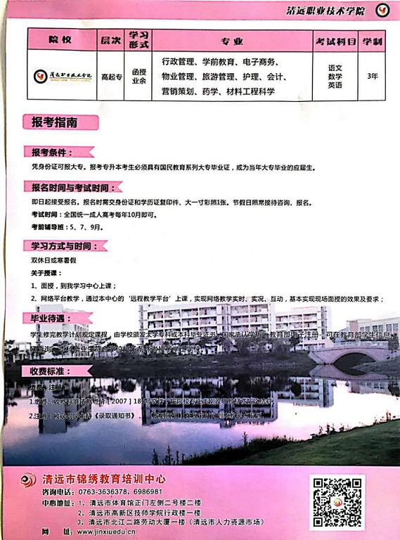 共青團清遠(yuǎn)市委員會2017年圓夢計劃正式啟動!【北京大學(xué)圓夢計劃,圓你大學(xué)夢】成人本科:北京大學(xué)(網(wǎng)絡(luò)教育)符合條件者3年共交學(xué)費2000元,專科:清遠(yuǎn)職業(yè)技術(shù)學(xué)院(成人函授),符合條件者3年共交學(xué)費1000元,就能完成學(xué)業(yè),輕松拿證!另外,企業(yè)人力資源管理師職業(yè)資格考證、叉車上崗證考證等現(xiàn)火熱接受報名中,歡迎有志提升自己的朋友咨詢報名。咨詢熱線:成老師0763-3630112 15816286696微信同步 報名地址:清遠(yuǎn)市北江二路勞動大廈一樓