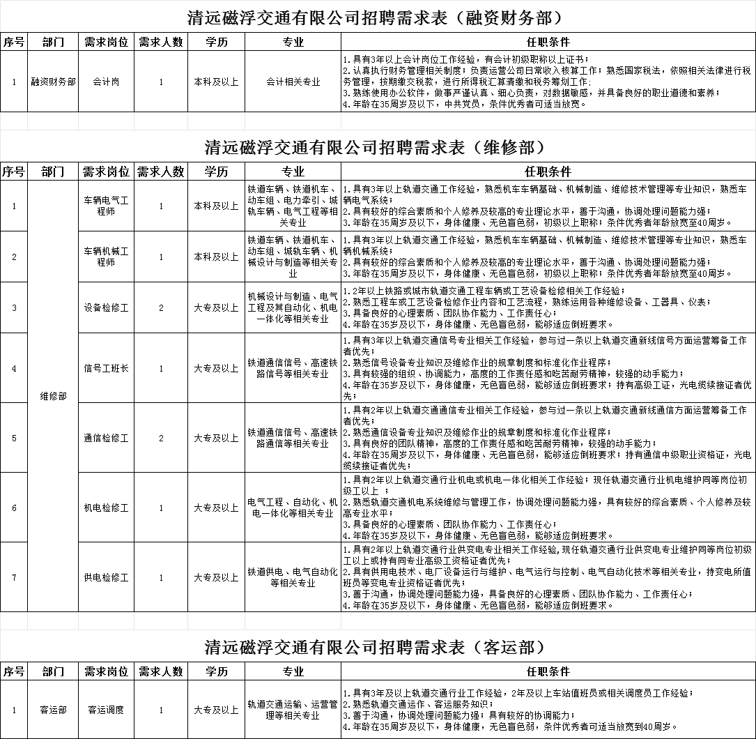 國(guó)企招聘!清遠(yuǎn)磁浮交通有限公司2023年招聘公告