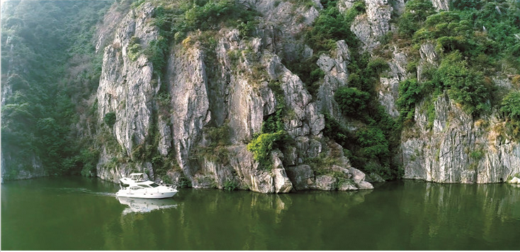乘坐在快艇上乘風(fēng)破浪,在江面上疾馳,兩岸的青山巍峨聳立,偶有成群的白鷺在江面上拍著翅膀飛過(guò),不遠(yuǎn)處還有農(nóng)舍、田園,眼前的景色就像一幅優(yōu)美的山水畫(huà)。唐代名相張九齡就在其詩(shī)作《湞陽(yáng)峽》中寫(xiě)道:“行舟傍越岑,窈窕越溪深。水暗先秋冷,山晴當(dāng)晝陰”,表現(xiàn)了峽谷的幽深。即將開(kāi)通的廣樂(lè)高速,也有架橋在江面上經(jīng)過(guò),那巨大高聳的橋梁,本身也是一景,F(xiàn)代化的橋梁與古樸的江景相映成趣,“一橋飛架南北”的景觀讓人嘆為觀止。景區(qū)所提供的快艇也是全新的,里面電視、音響、洗手間、酒吧等一應(yīng)俱全,與友人在這里一邊品茶一邊欣賞兩岸景色,美哉快哉!